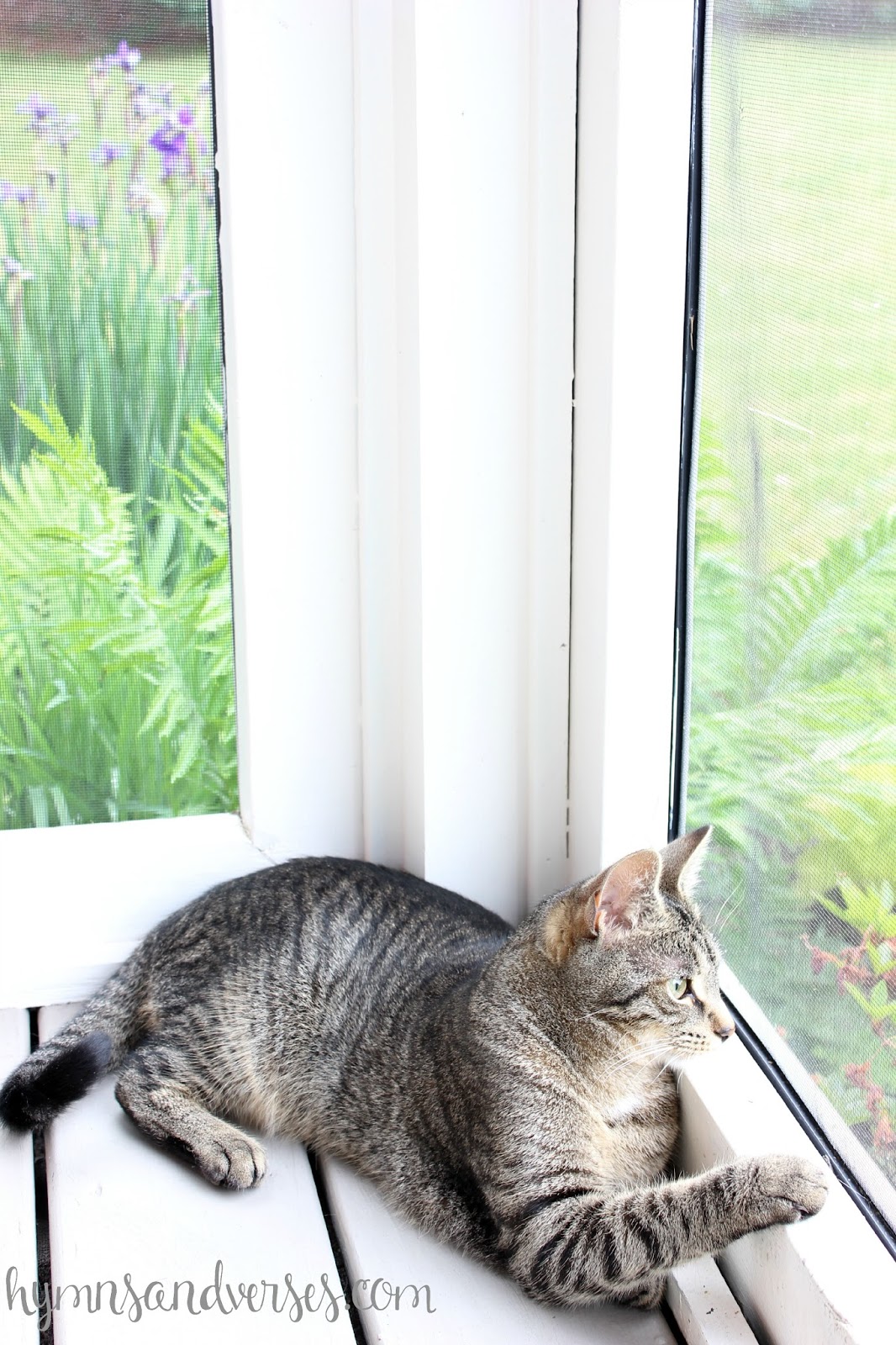 If you are new here – this is the only other girl in my home (I’m a mom to three boys) – Sadie my little cat! She loves being outside on the porch to watch the birds and butterflies!