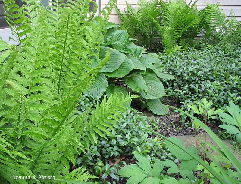 Several years ago when my aunt heard I was planting a perennial garden, she was happy to share some plants from her own garden. Among those plants were these ferns. The ferns have grown and spread like crazy and I love them.