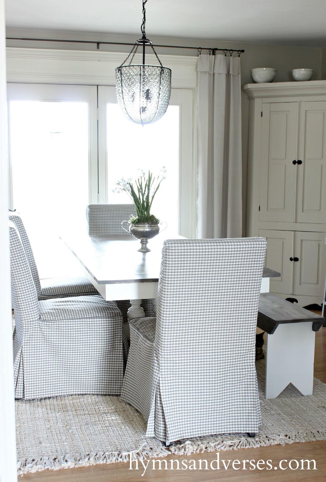 These are gorgeous and what a STEAL!! I love the look with your table and the bench goes beautifully! Very nice!! I agree, one little change and that starts the snowball- lol!!:)