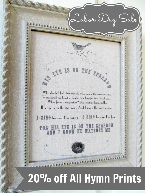 To celebrate the Labor Day weekend, I am having a sale in my Hymns and Verses Etsy Shop. All of my hymn prints are 20% off now through Monday, September 2. Use the coupon code LABOR20 at the Etsy Checkout.
