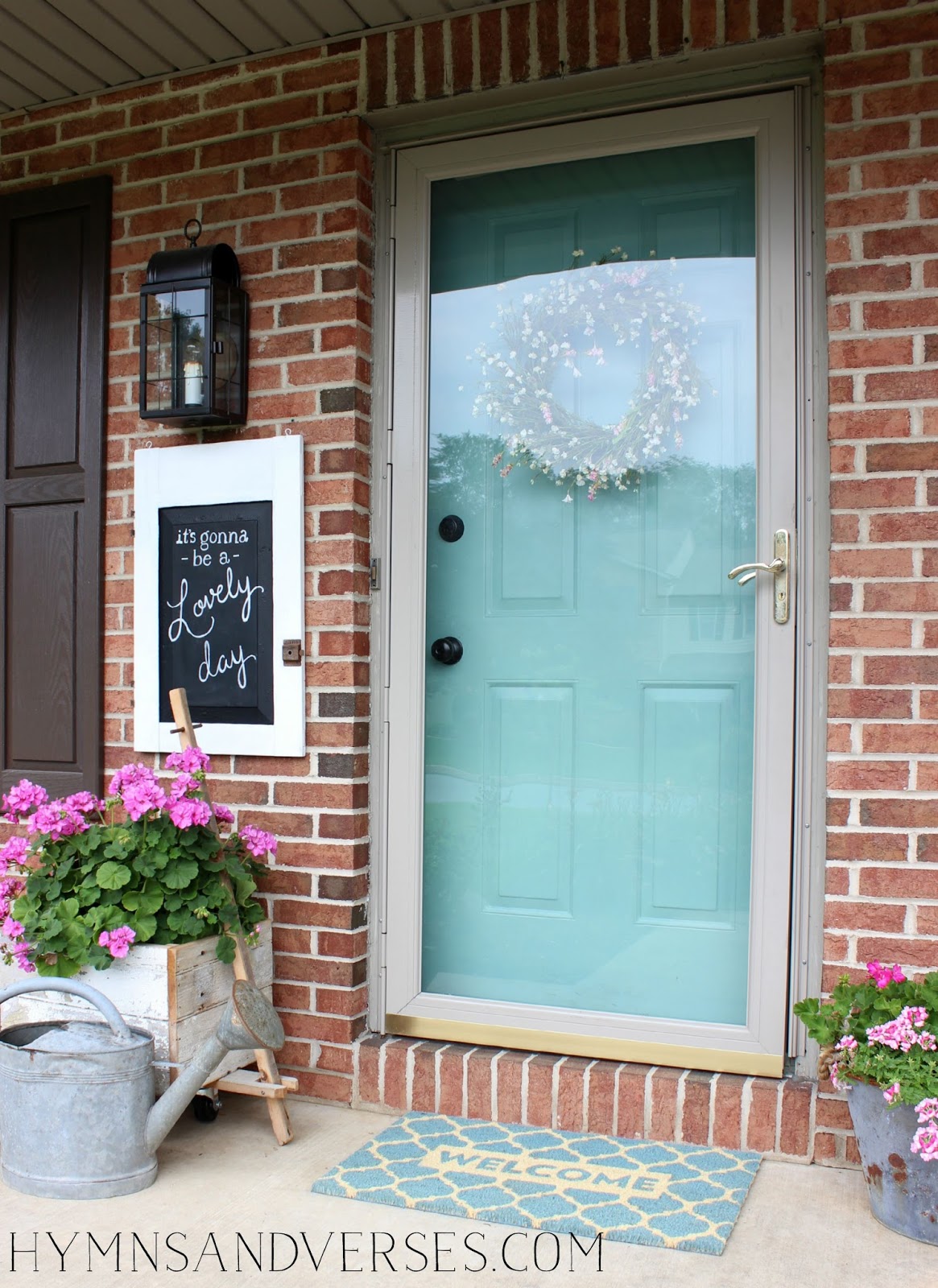 So, the first thing was to dress up my front door! I get a lot of requests about my front door color – it is Benjamin Moore Mill Springs Blue. I painted it last spring and I still love it! Just a reminder – you can now find sources for my home under the “My Home” button in the navigation bar above!