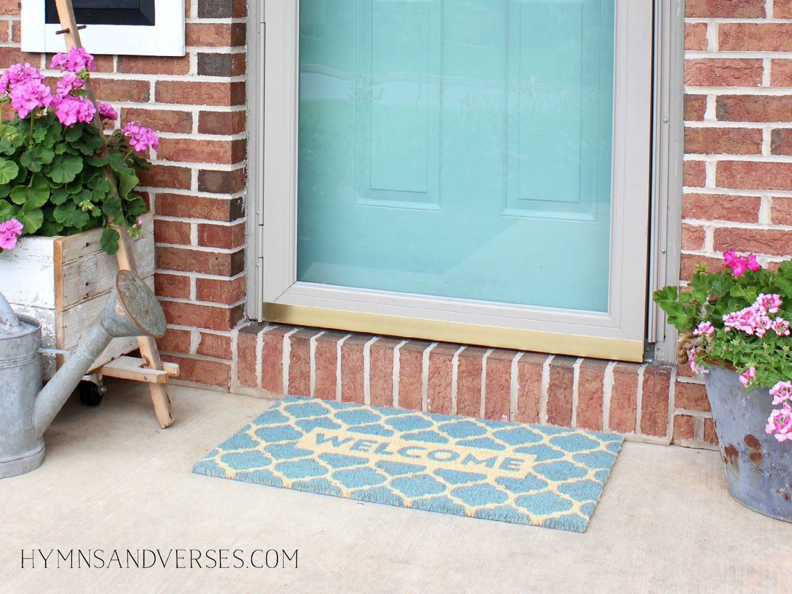 My antique watering can had been out back on my potting bench, but I decided it should get more attention and I moved it to the front porch!